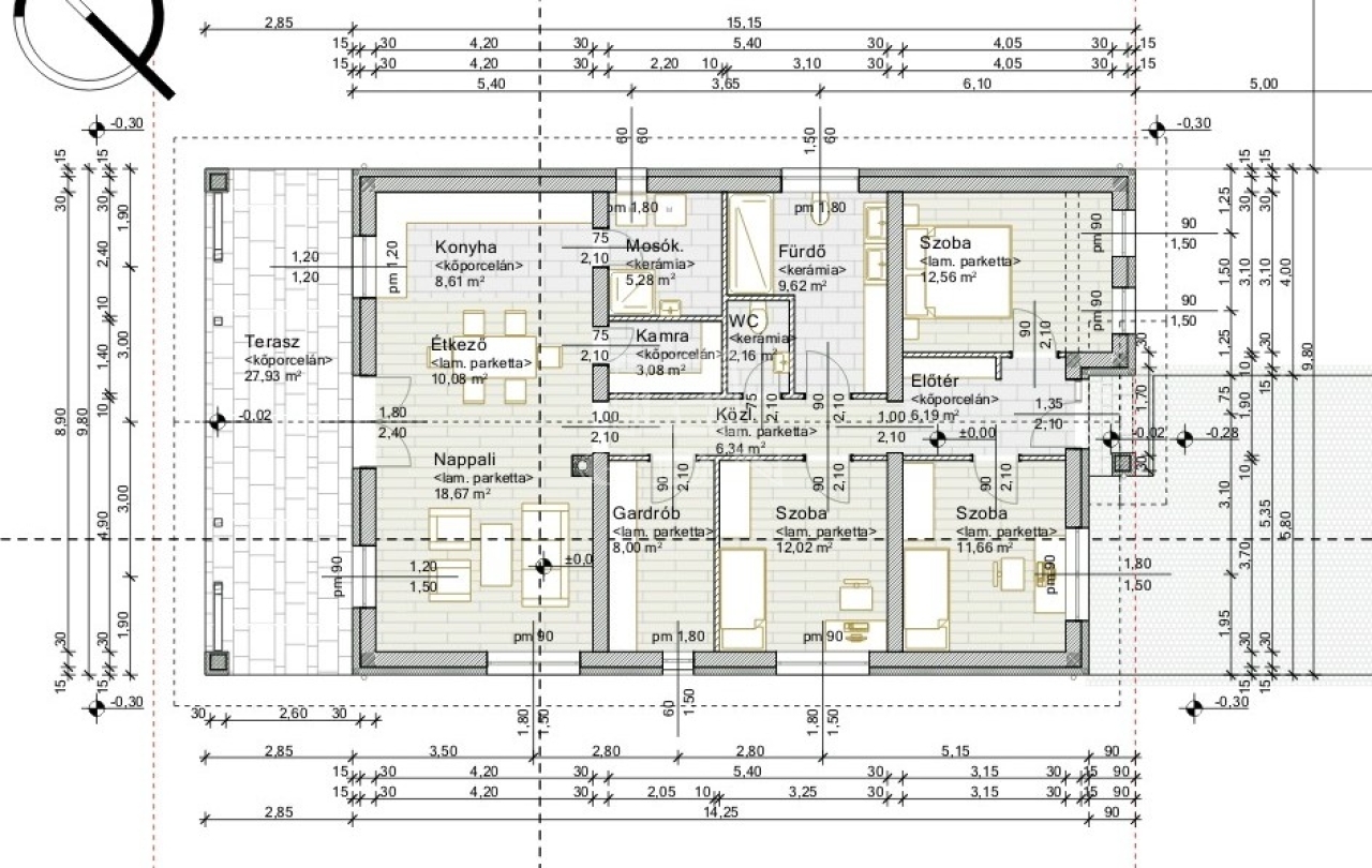 -szerkezete 30-as Porotherm tégla + 15 cm-es grafitos szigetelés