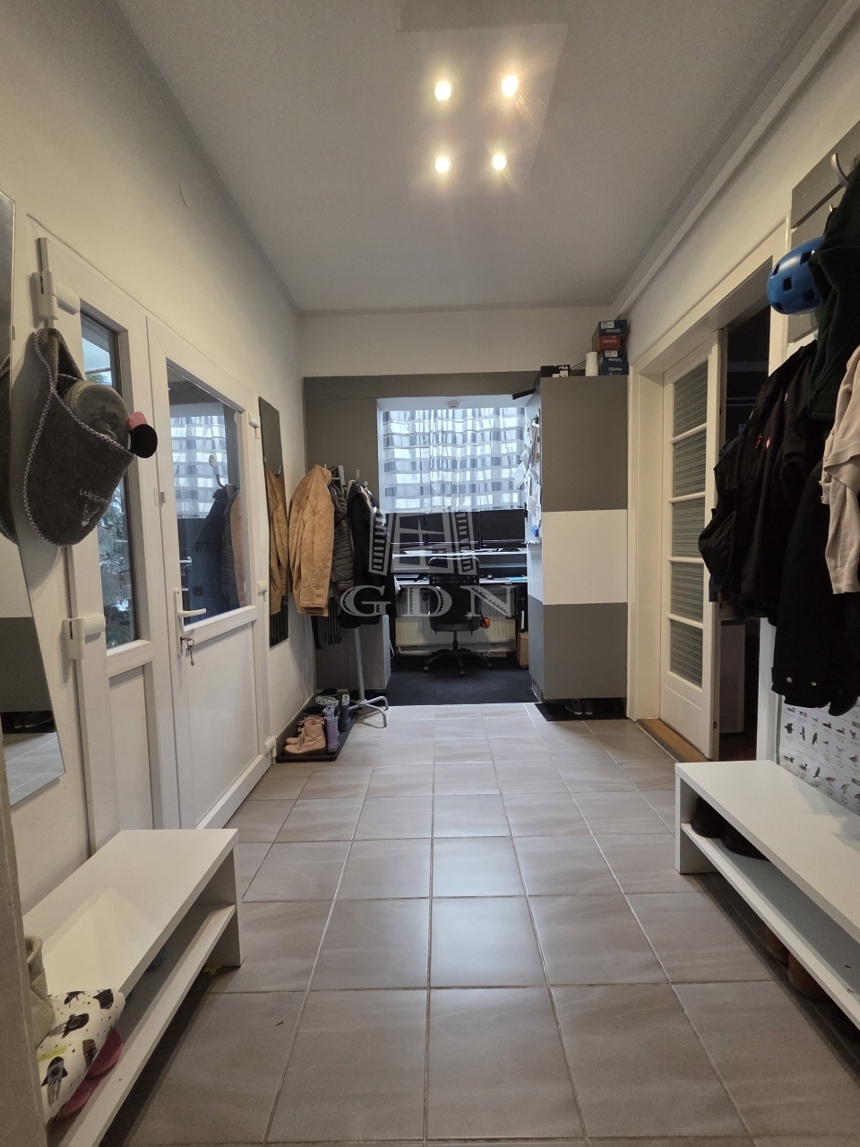 Beépített bútorok az előszobában és a nappaliban