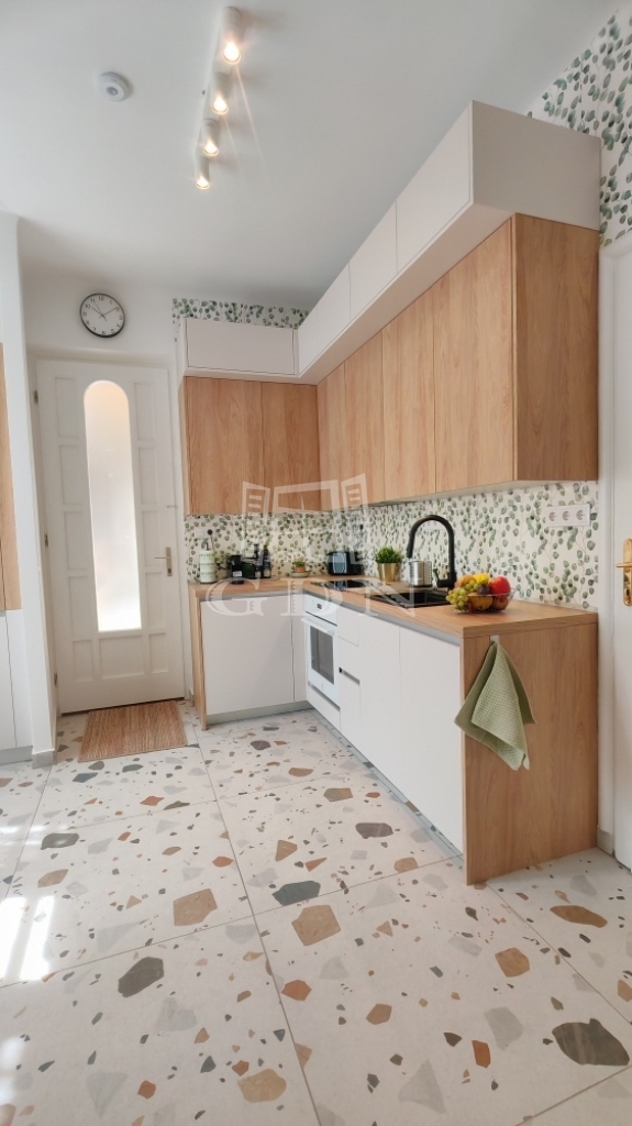 A 91 m²-es, téglaépítésű ingatlan az épület 5. emeletén található, kiváló elosztásának köszönhetően pedig rendkívül kényelmes és világos életteret kínál. A két tágas szoba mellett a lakás különleges hangulatát a modern berendezés, az újszerű állapot és a kertre néző nyugodt kilátás teszi teljessé.