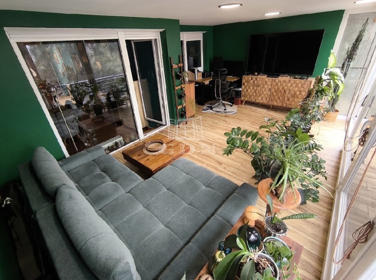 • 24 m²-es beépített, fűthető erkély, amely egész évben használható (nappali, iroda, háló, télikert stb.), tolóajtókkal, prémium burkolatokkal és padlófűtéssel.