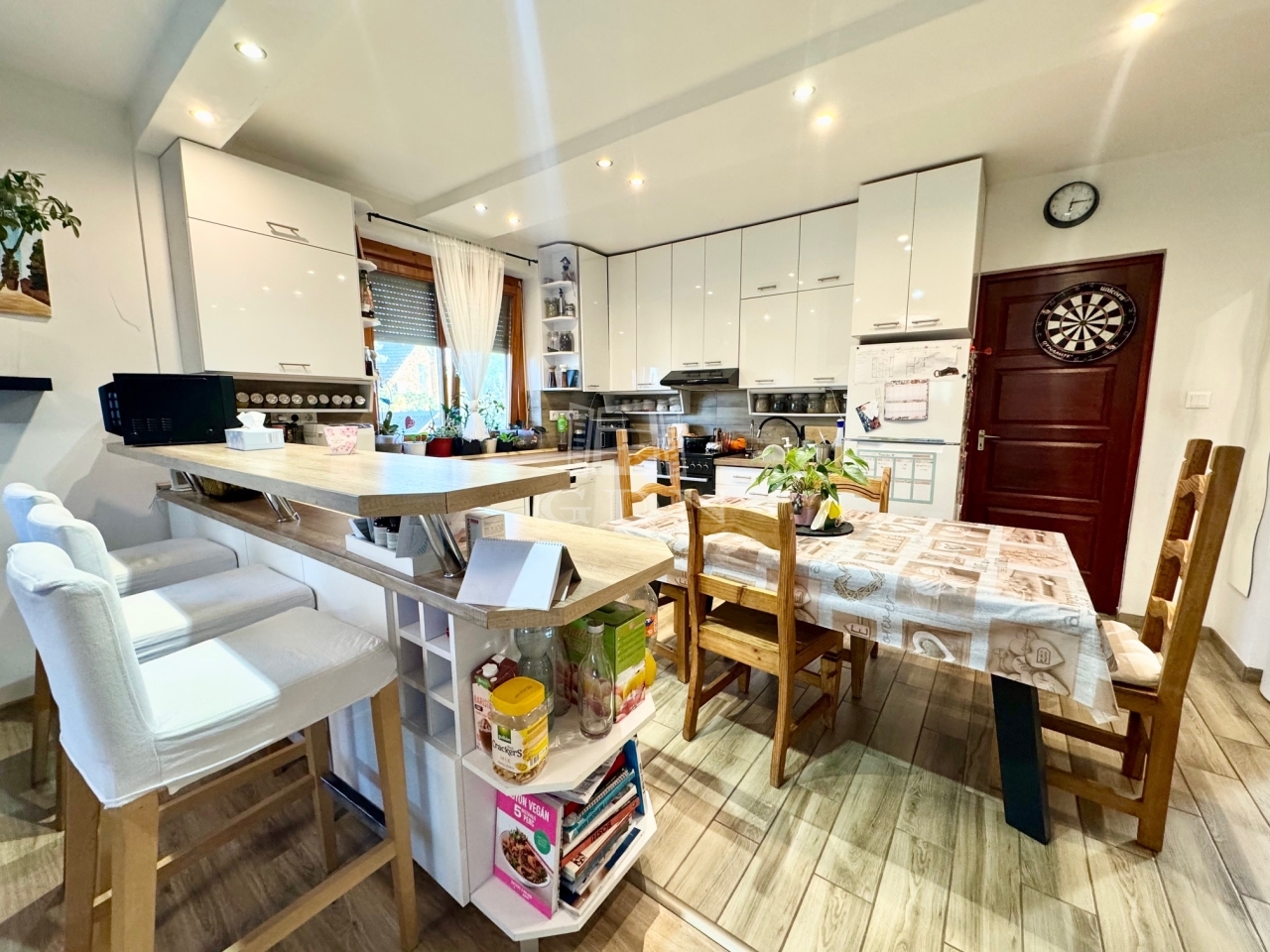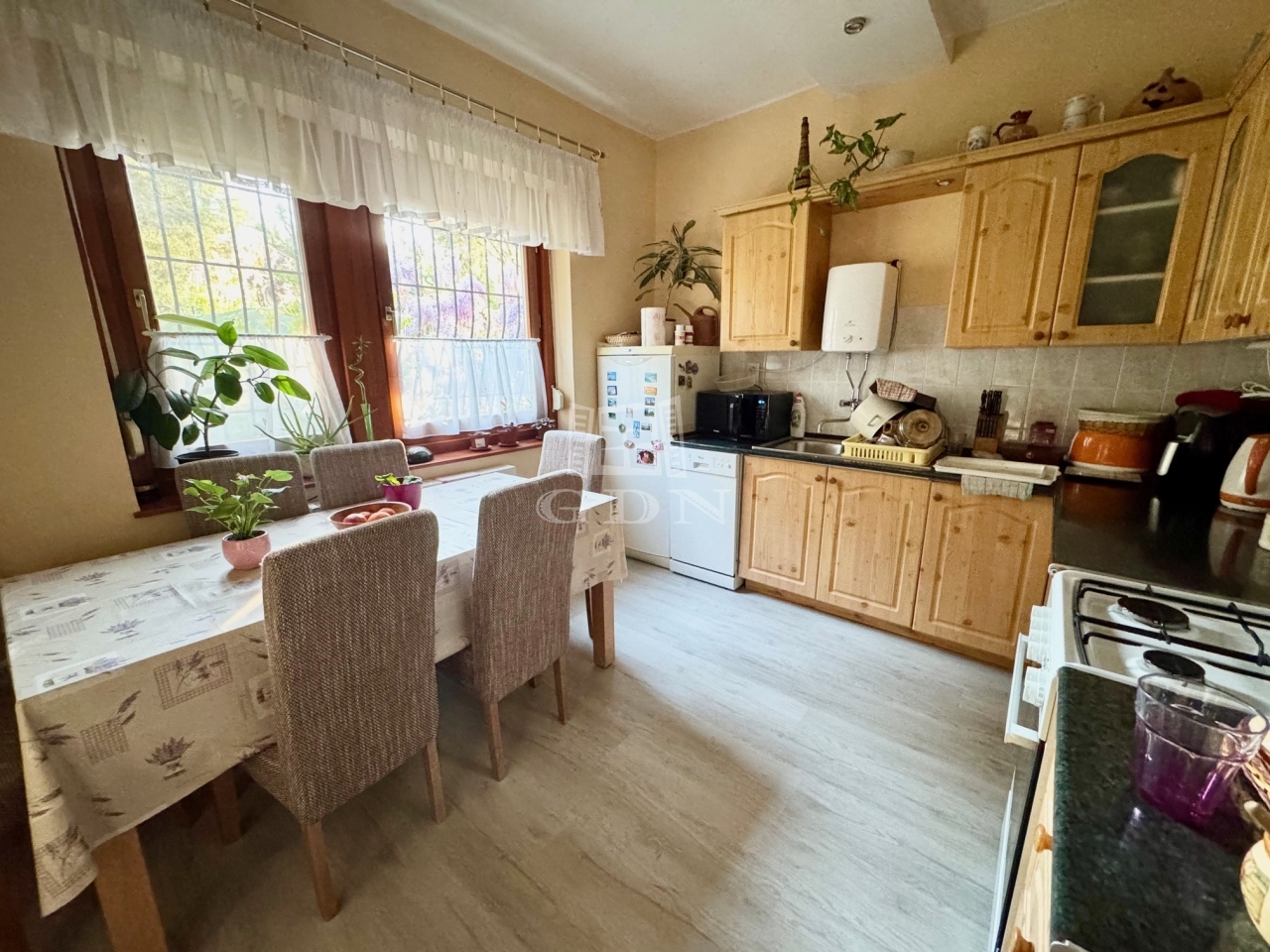 Göd-Felsőgöd kertvárosi környezetében, csendes, aszfaltozott utcában, kiváló közlekedés és ellátottság mellett, 536nm-es összközműves szinteltolásokkal tagolt telken, 1985-ben téglából épült, 3 szintes, (garázs/tároló, földszint, emelet) betonfödémes, 211nm-es lakóterületű, 6 szobás, dupla komfortos, dupla konyhás, kamrás, napos-világos Dk-i fekvésű, gázkazán és vegyestüzelésű kazán fűtésű, belső lépcsőházzal összekötött, de külön bejárattal rendelkező, szeparált, jó állapotú, 2017-ben részben felújított, klimatizált, rugalmasan birtokba vehető 2 generációs ikerház fél, beépített, gépesített konyhával, közvetlenül a házból is megközelíthető tárolóval és 2 gépkocsi számára alkalmas fűtött garázzsal, karbantartott, teraszos kialakítású gondozott kerttel, fúrt kúttal, kulturált környezetben eladó.