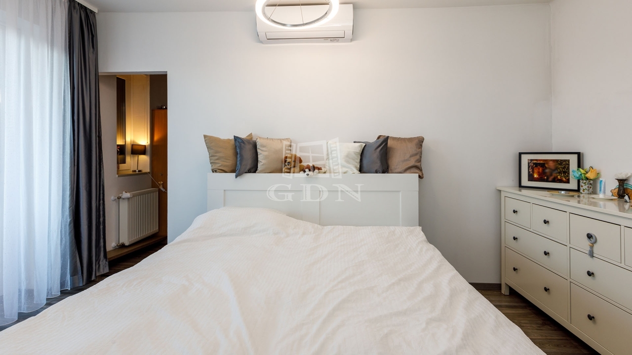 A hőszigetelést műanyag nyílászárók biztosítják, redőnyökkel és szúnyoghálókkal. Hűtő-fűtő klímaberendezés és a gázkazános fűtés pedig a megfelelő hőmérsékletet garantálja.