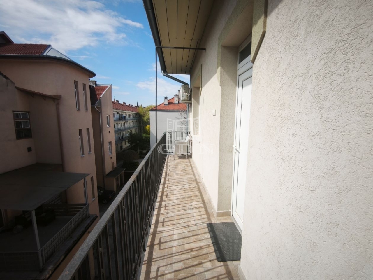 Az udvari kilátás nyugodt, zavartalan környezetet biztosít, melyet az előtte elhelyezkedő körfolyosó tesz még különlegesebbé, hiszen ez a tér akár kis teraszként is funkcionálhat, mert nem vezet át rajta forgalom.