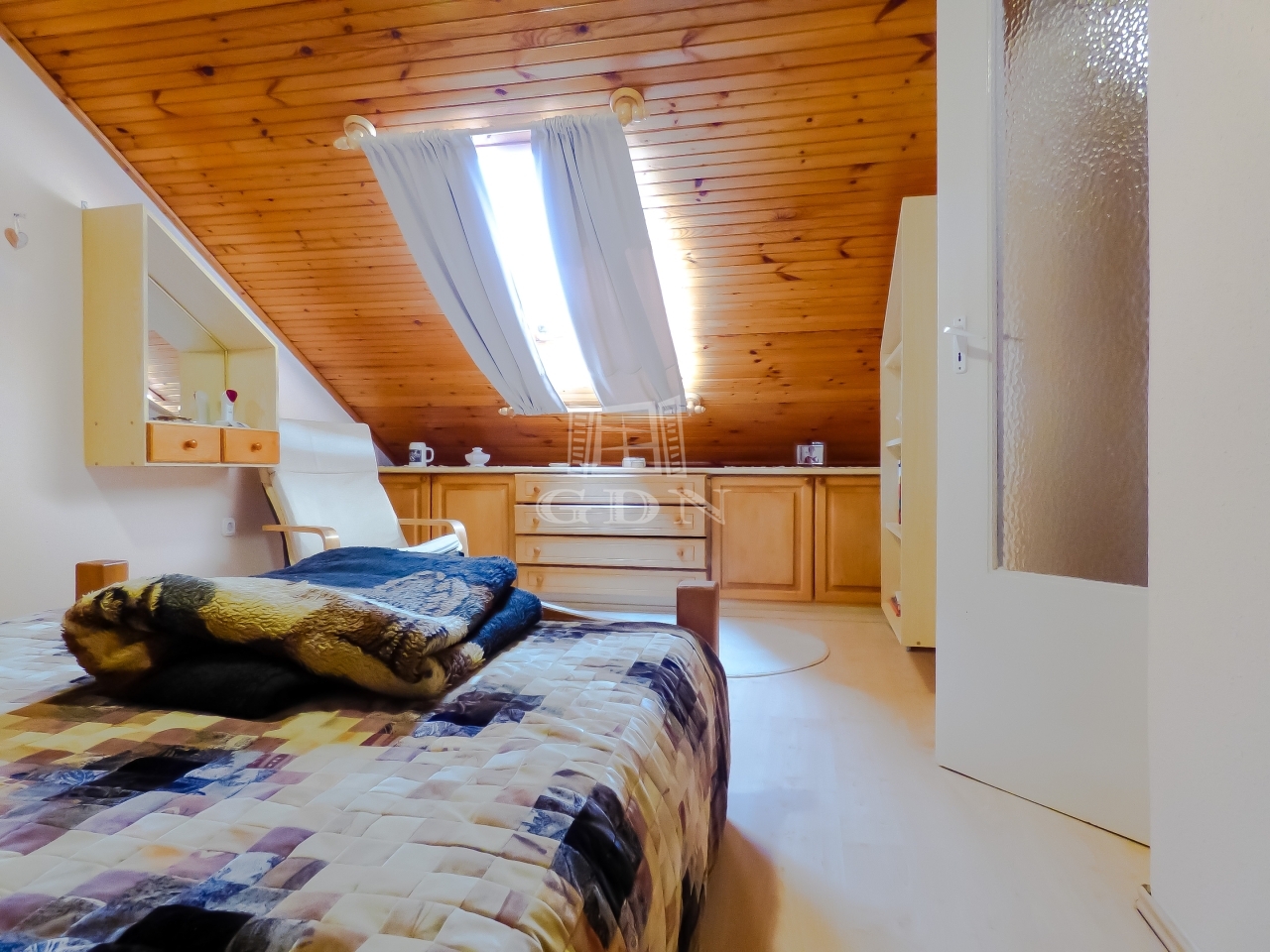 Az emelet nagy étkezős - nappali, 2 hálószoba, konyha (amelyből akár még egy hálószobát ki lehet alakítani), erkély, fürdőszoba, kamra kialakítású.