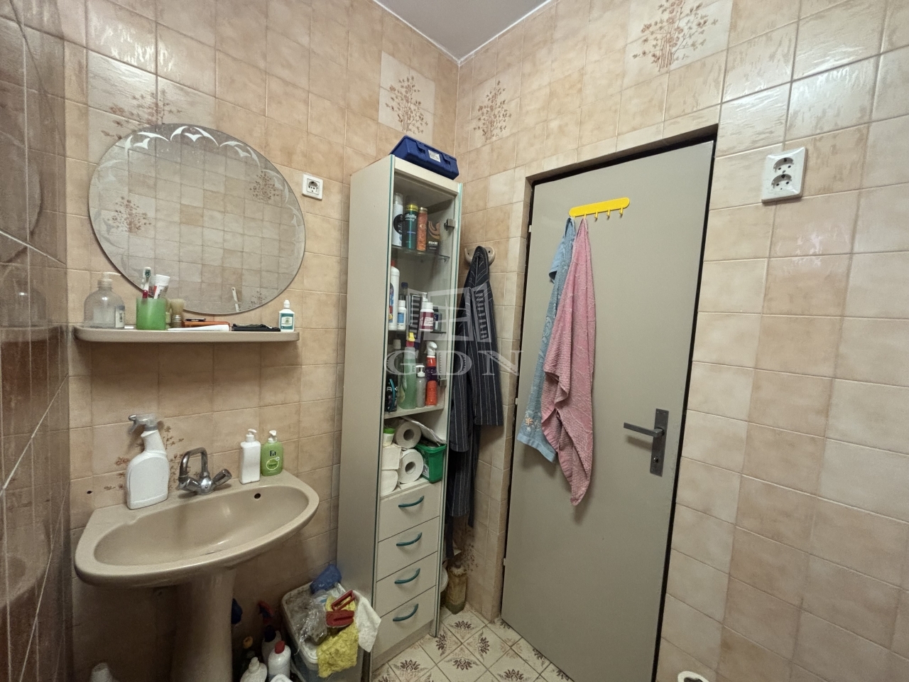 Tágas fürdőszoba,- burkolatokat 2020-ban cserélték.