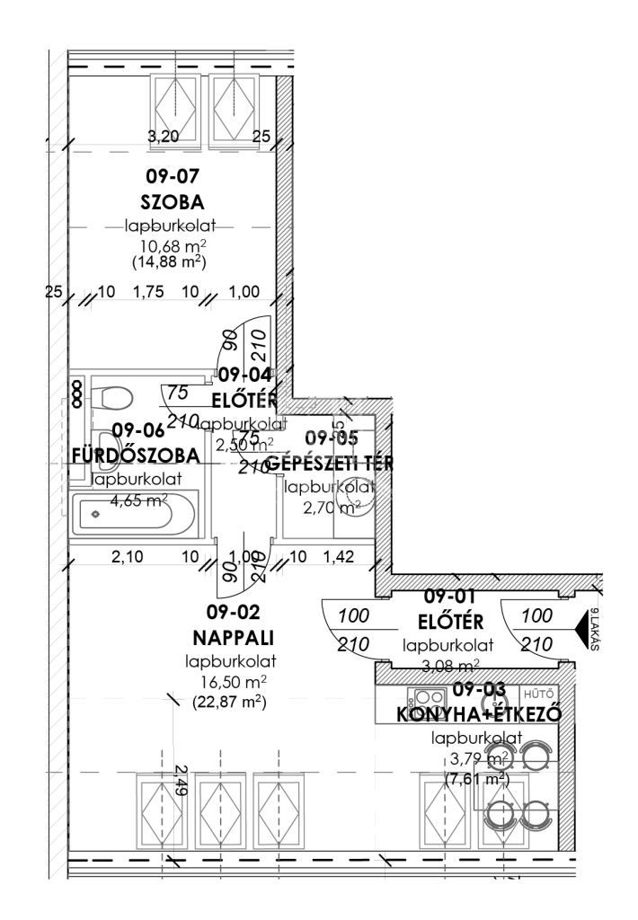 - nettó 44 m² (kb. 52 m² bruttó)