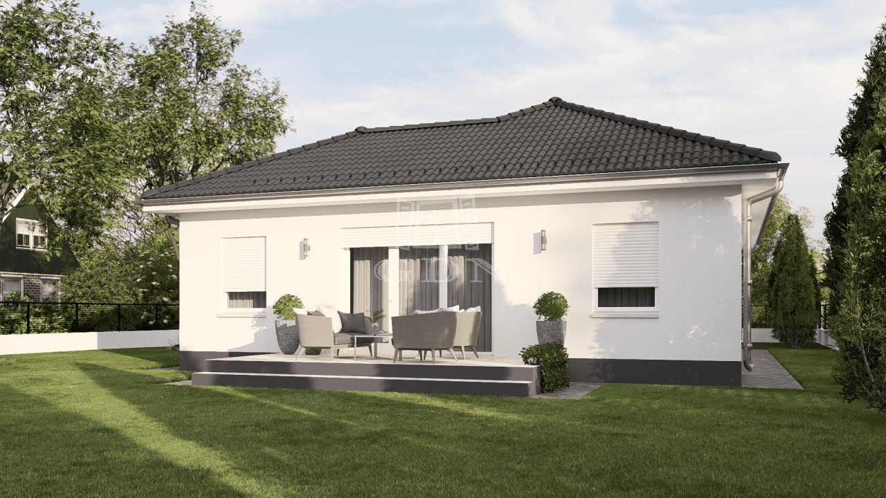 A hirdetésben szereplő ingatlan a Poszeidon típusház. A Poszeidon ház ára a kulcsrakész állapot alapján került kiszámításra.