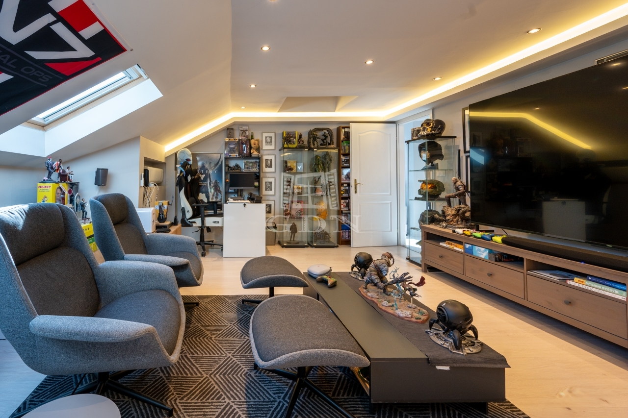 A KÉT LAKRÉSZT 15 NM-ES PIHENŐ SZOBA KÖTI ÖSSZE, amely igazi "chill" helyiség.