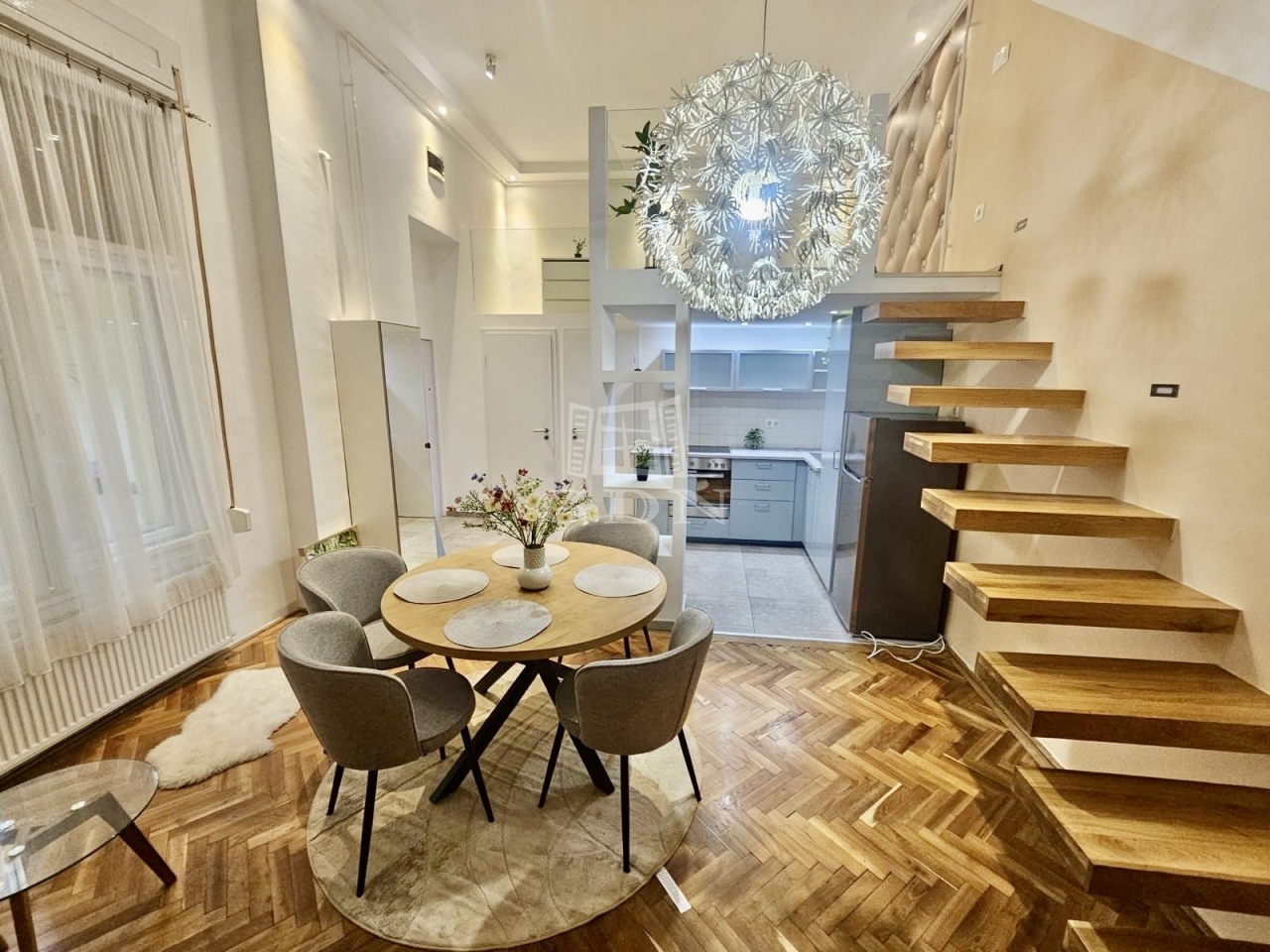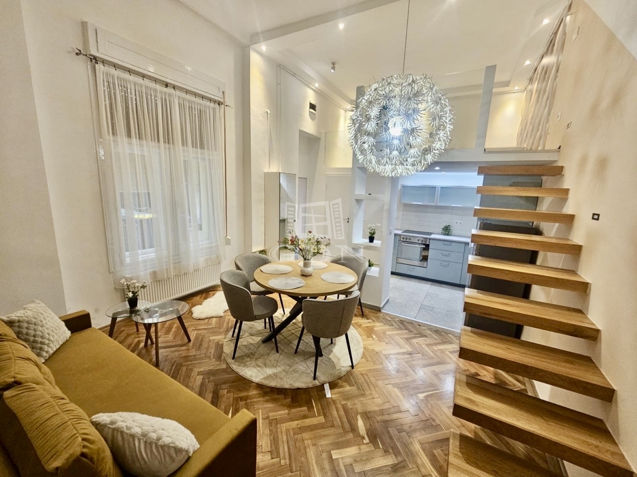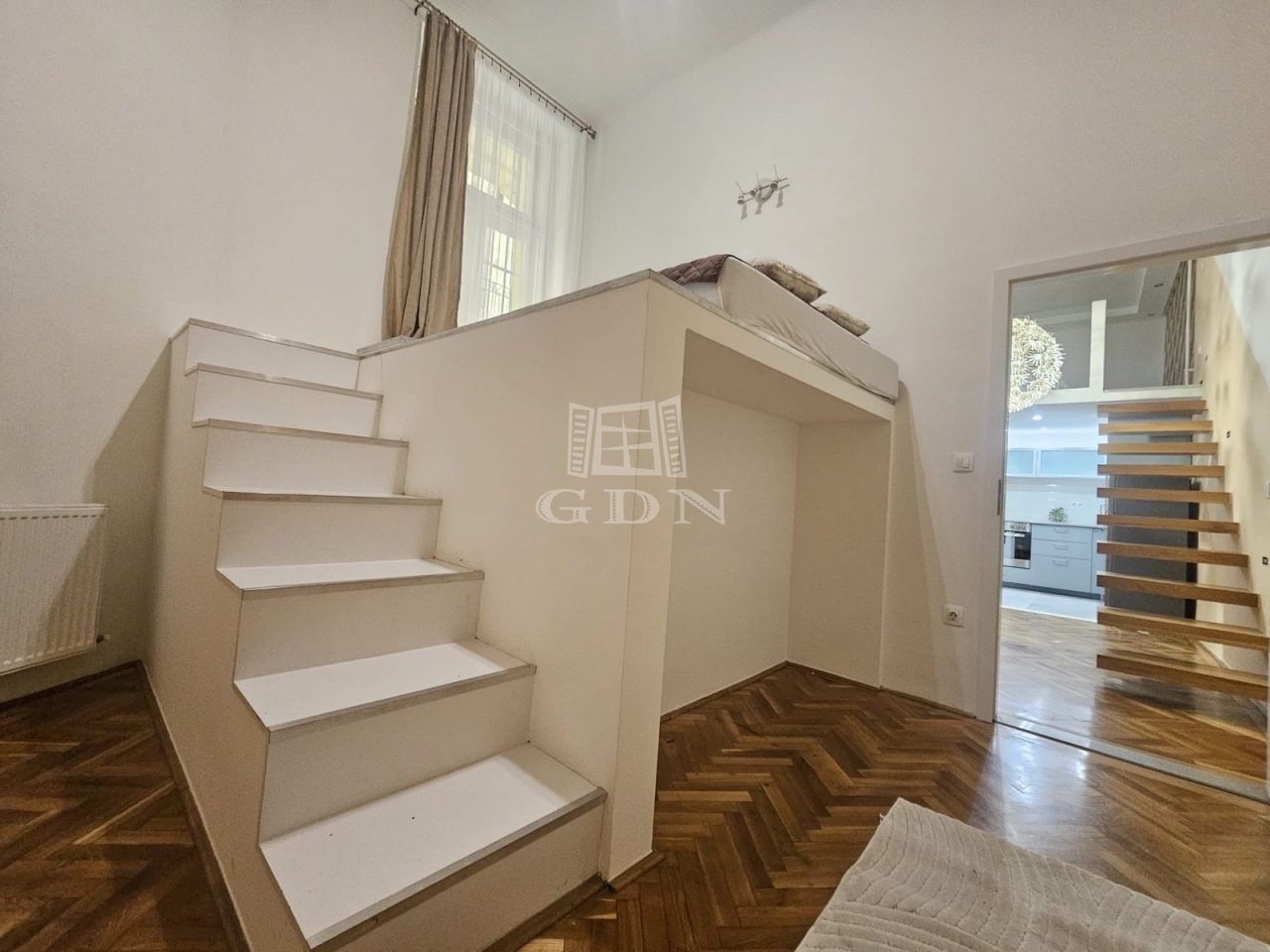 Eladó egy 48 m²-es, 2 szobás, felújított lakás az Arany János utcában, földszinti elhelyezkedéssel. Az ingatlan különlegessége a praktikusan kialakított dupla galéria, amely jelentősen megnöveli a lakás használható életterét.
