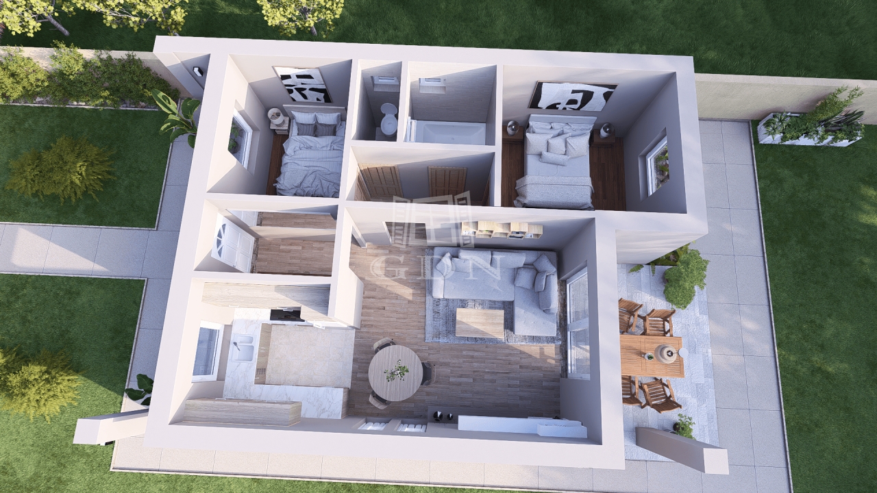 A hirdetésben szereplő ingatlan a Niké típusház. A Niké ház ára a kulcsrakész állapot alapján került kiszámításra.