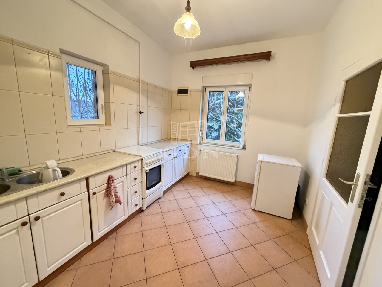 A nappali mellett található egy kényelmes méretű hálószoba, ez a szintén nagy méretű konyha étkezőből közelíthető meg jelenleg.