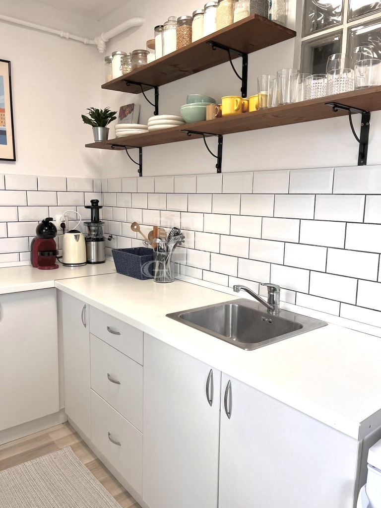 A lakás magasföldszinten található. Világos, egy szobás, tágas konyhával és fürdőszobával rendelkezik. Pár éve fel lett újítva, műanyag nyílászárókkal és TerraSec biztonsági ajtóval lett felszerelve.
