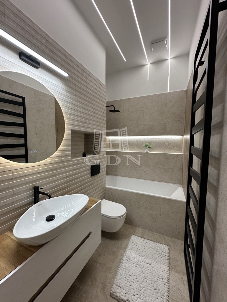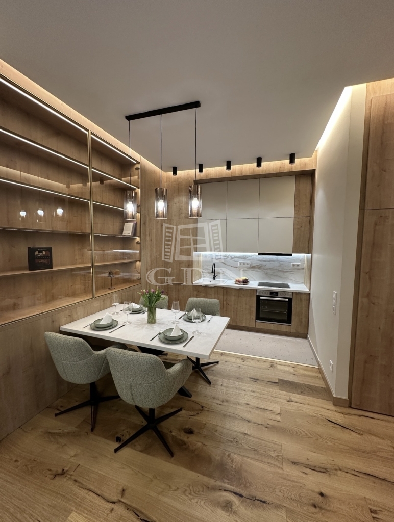 A lakás atmoszféráját a letisztult design, az időtálló anyaghasználat és az elegánsan összehangolt enteriőr emeli ki a kínálatból.