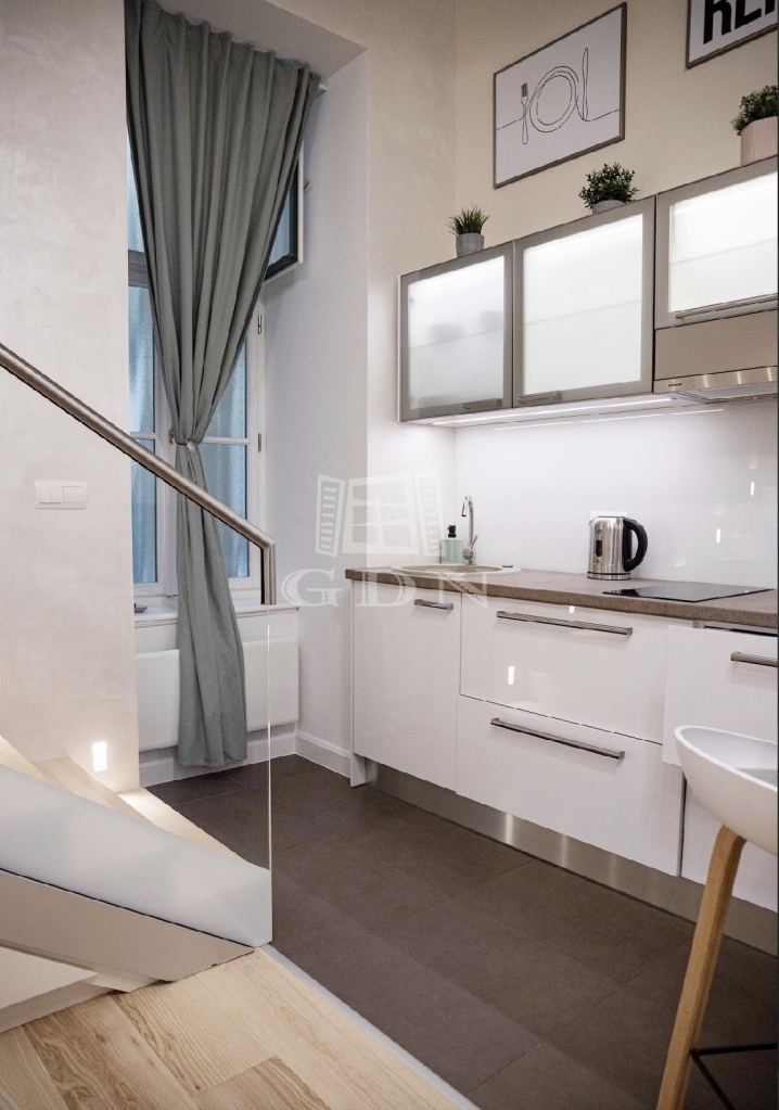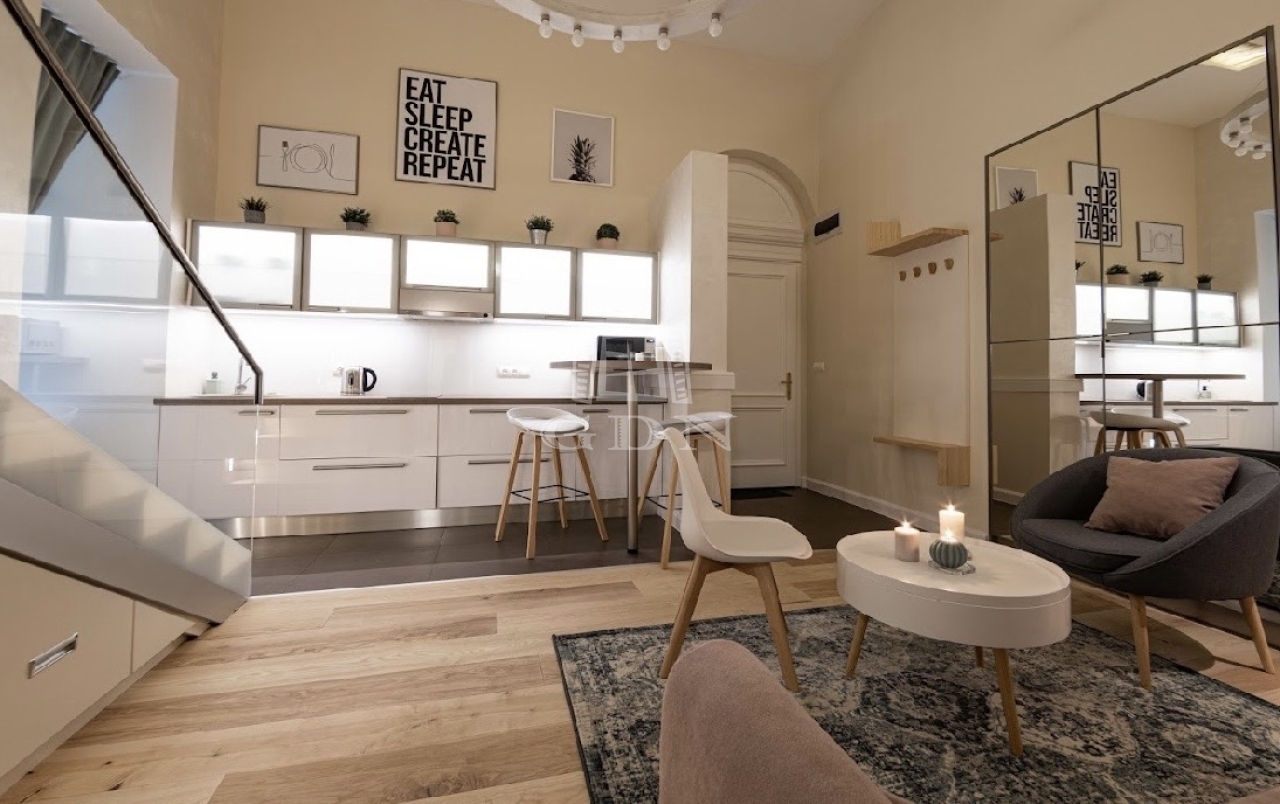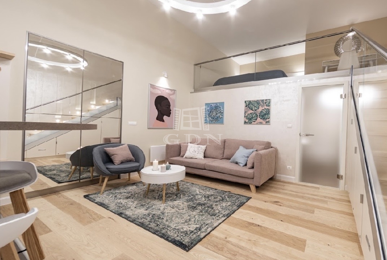 Kiadó az Ó utca központi, mégis csendes részén egy 34 m²-es, belső állógalériás ingatlan, amely lakásként és irodaként egyaránt kiválóan használható.