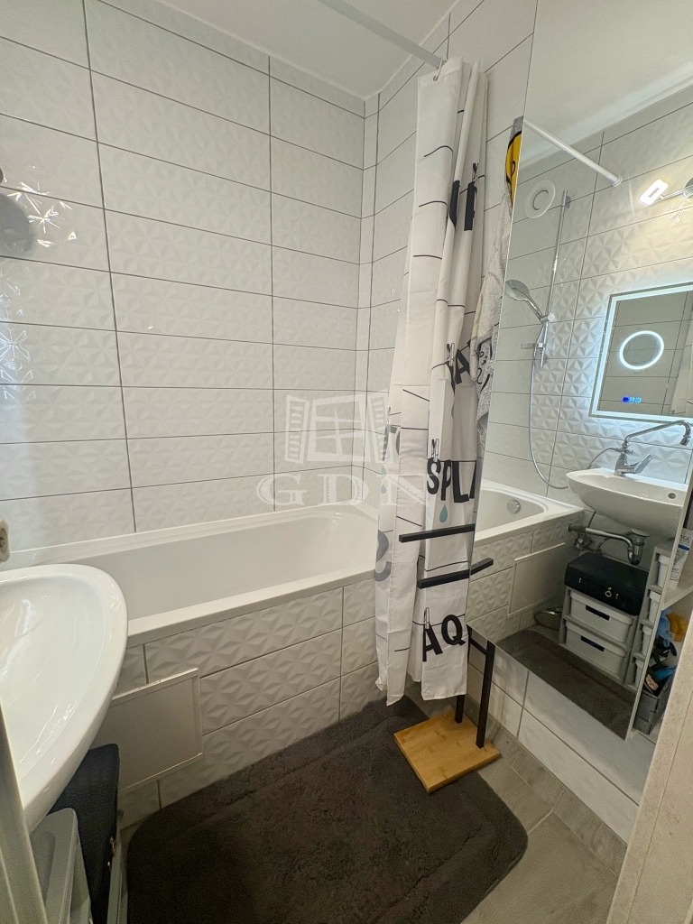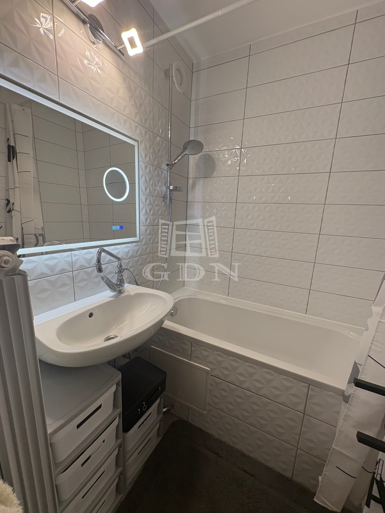 Fürdőszoba teljes felújítása mellett a vízvezeték átépítésre került, ezért a mosógép nem foglalja a helyet, a gardrobe falra került kivezetésre.
