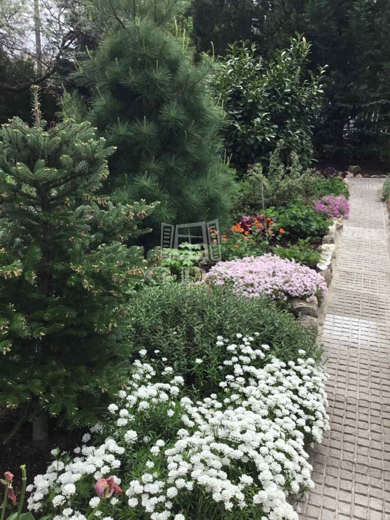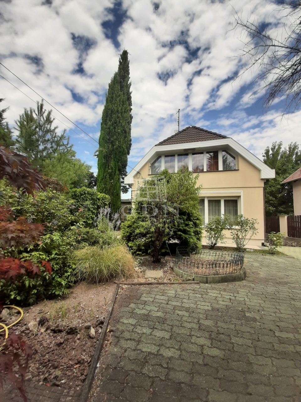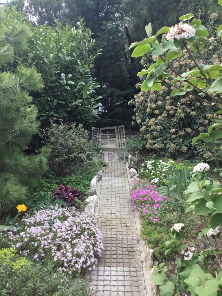 KERT a szomszédoktól szeparált. Az előkertben különleges növények, virágok és fák között térkövezett járdán érjük el a ház bejáratát.