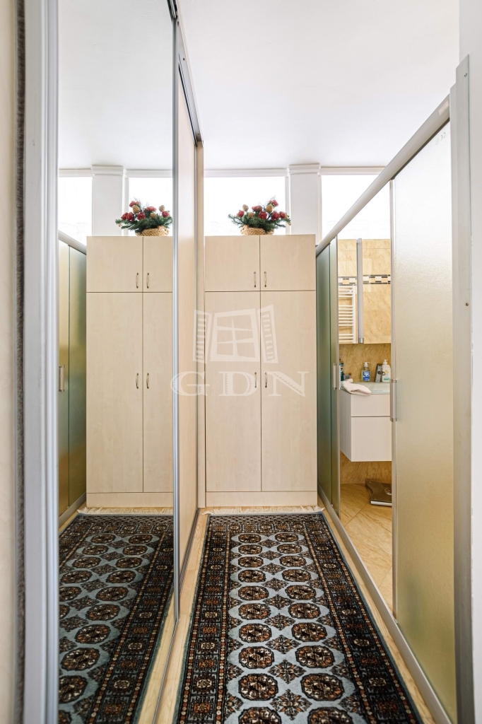 előszoba (4,2 m2), WC (1,1 m2), kamra (0,9 m2), nappali (34,5 m2), konyha (8,16 m2), gardrób (4,5 m2), fürdő (3,30 m2), kettő szoba (8,7 m2, 8,06 m2). Ezen a szinten gyönyörködhetünk, a 40 m2-es teraszon a város látképébe.