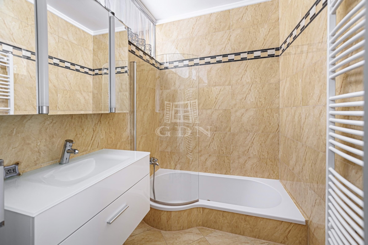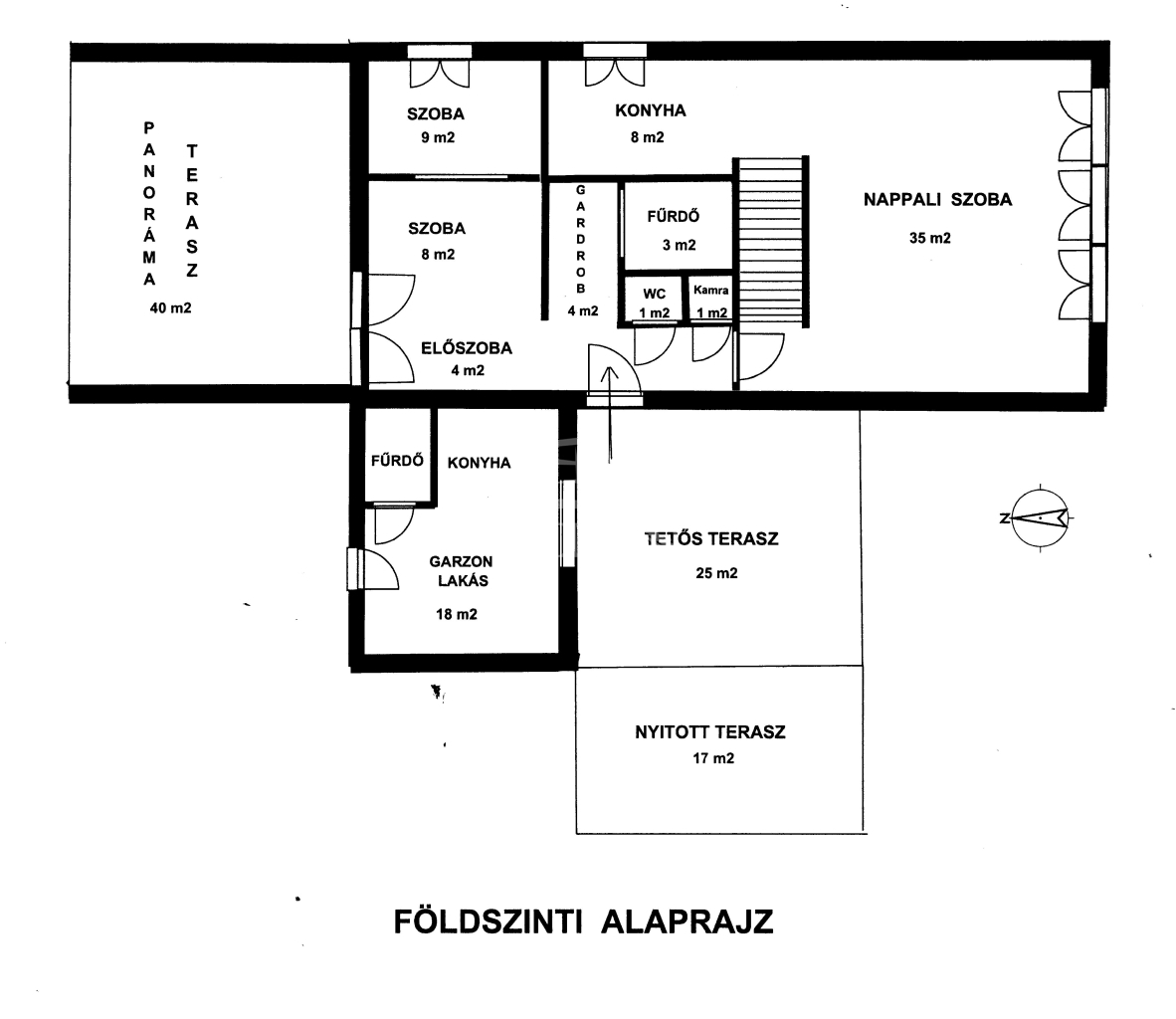 Az alapterület része egy külön bejáratú, önálló 18 m2-es garzon lakás is (szoba, teakonyha és zuhanyozó)