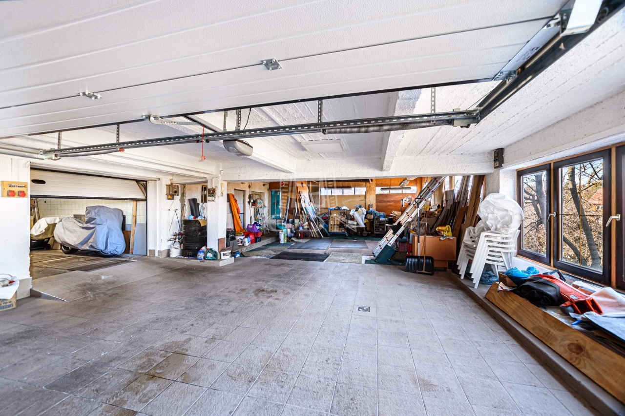 háztartási tároló (17 m2), kazánház (3 m2), szerelő aknával kiépített garázs (31 m2), valamint 90 m2-en 2-3 autó részére autóbeálló és szerelő műhely.