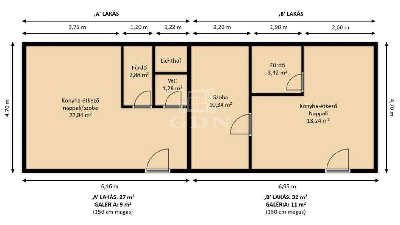 | 27 m2Alapterület | 3 Szoba |