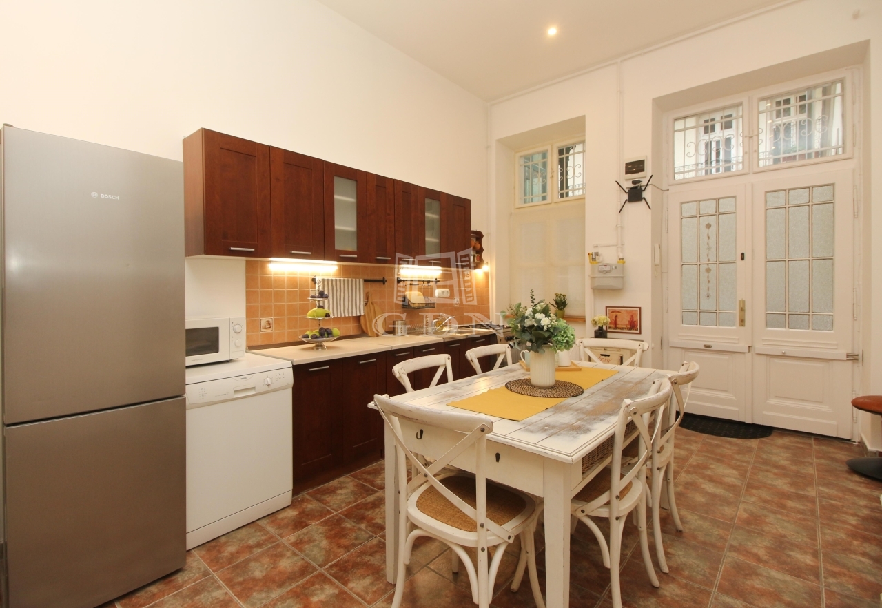 Az ingatlan Terézváros központi részén található. A lakás egyediségét a tradicionális polgári hangulat a finom belsőépítészeti megoldások és az egyedi lakberendezői munka teszi izgalmassá.