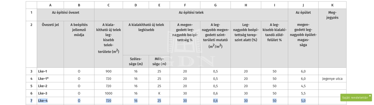 A telek Lke-4-es építési övezetbe esik, ahol: