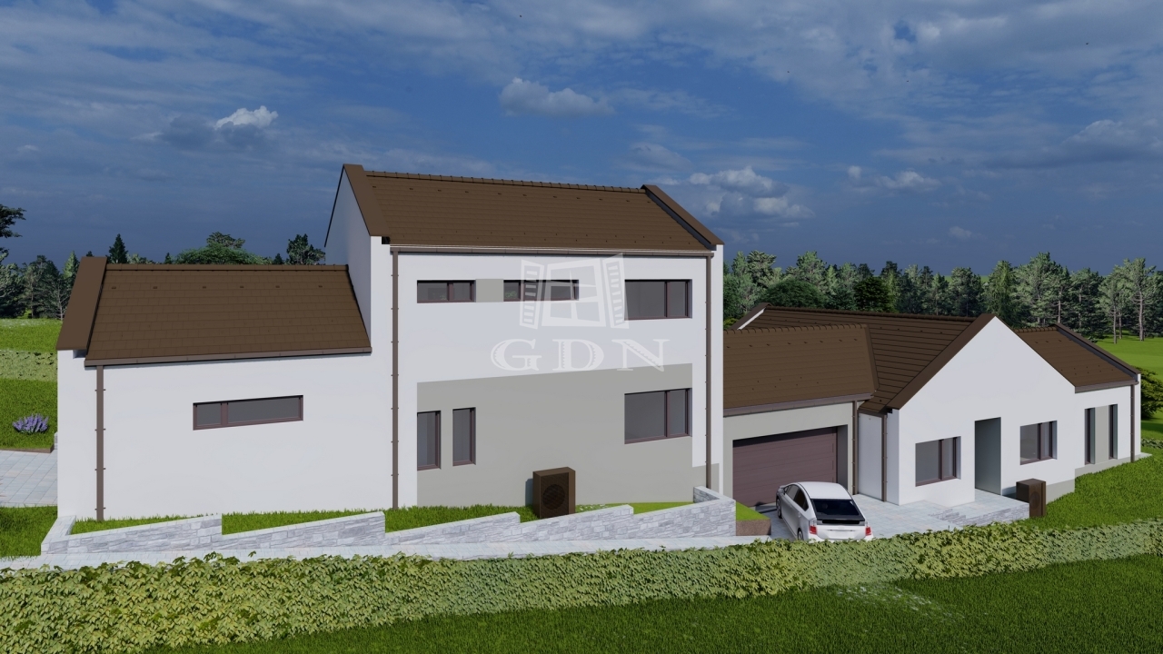 Veresegyház, Hegyek városrész csendes, kertvárosias részén, cca. 450 nm-es telek területtel, Új építésű, bruttó 181 nm-es, 4 szobás (nappali + 3 hálószoba, külön konyha, étkező), két szintes, vasbeton födémes (az emeleten is), hőszivattyús (levegő - vízes) padló fűtéssel, Dél - Keleti fekvésű, műanyag thermo dió színű (3 rétegű, 7 légkamrás) nyílászárós, szigetelt (15 cm dryvit), új építésű, a másik féltől teljesen elszaparált, garázzsal elválasztott, a másik lakóegységgel egy telken lévő családi ház (első) eladó.