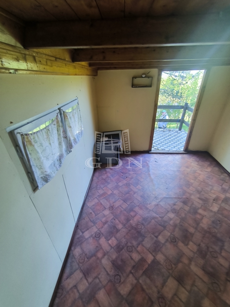 Nógrád zártkerti részén, aszfaltozott út mellett eladó, egy 16 nm alapterületű részben alápincézett, tetőtérbeépítéses, alpesi tetős faház, 821 nm-es telken.