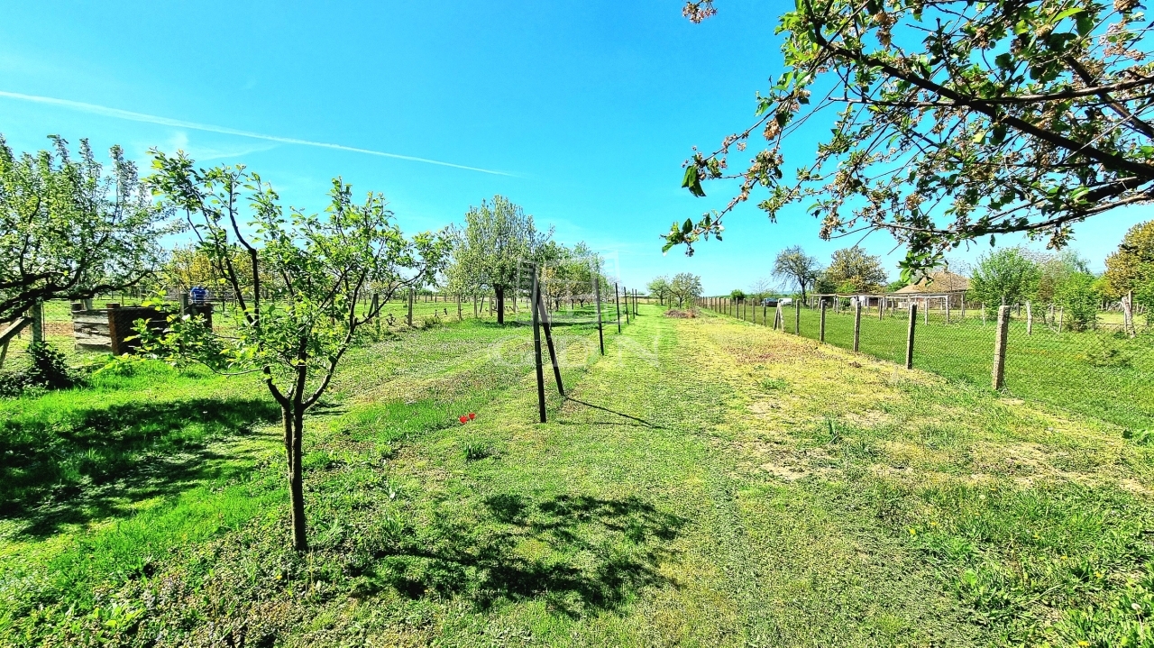 A 2314 m²-es, sík telek bőséges teret ad kertészkedéshez, gazdálkodáshoz vagy egyszerűen a pihenéshez.