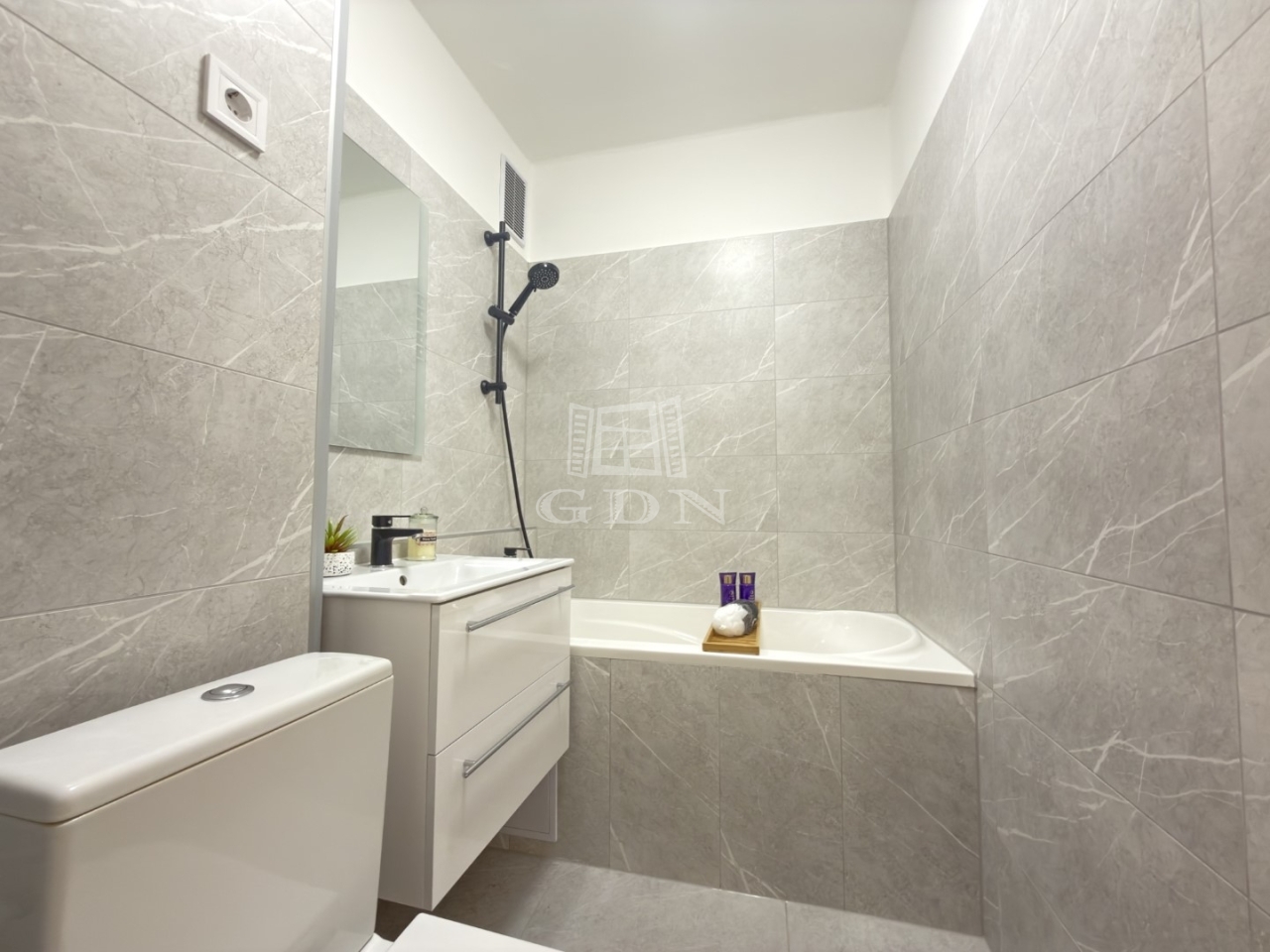 Az átalakítást követően, a konyha átkerült a nappaliba, így, 1 db külön nyíló szoba került kialakításra. A lakásban az összes burkolat cseréje megtörtént. A beltéri ajtók is újak, modern letisztultak. A fürdő is teljesen megújult, RAVAK kád került beépítésre.