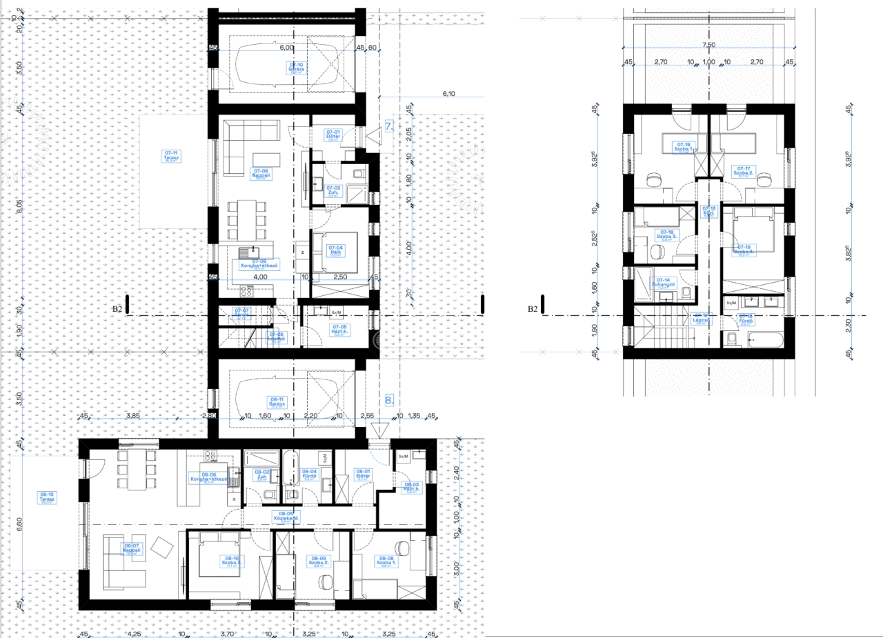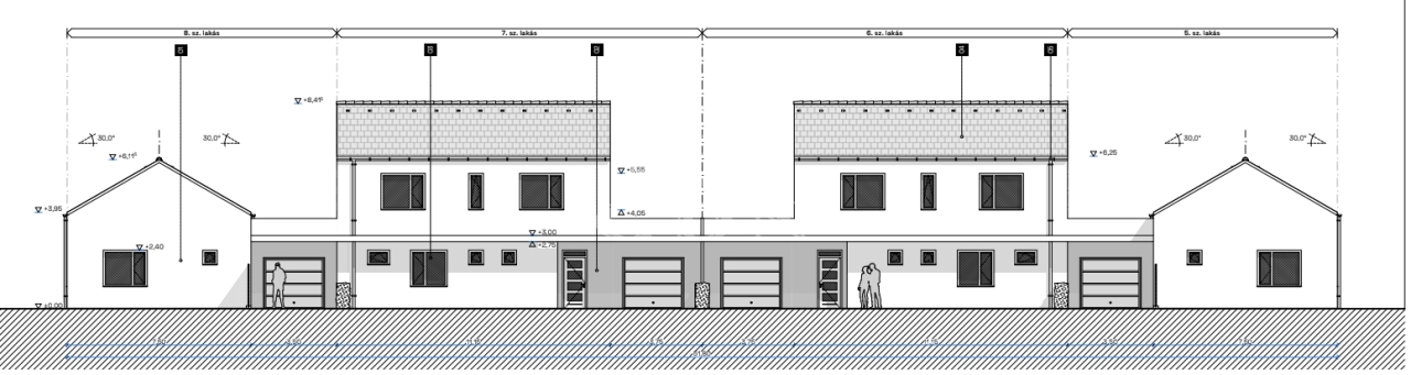 - 4 db kétszintes lakás garázzsal + terasszal + saját kertrésszel.