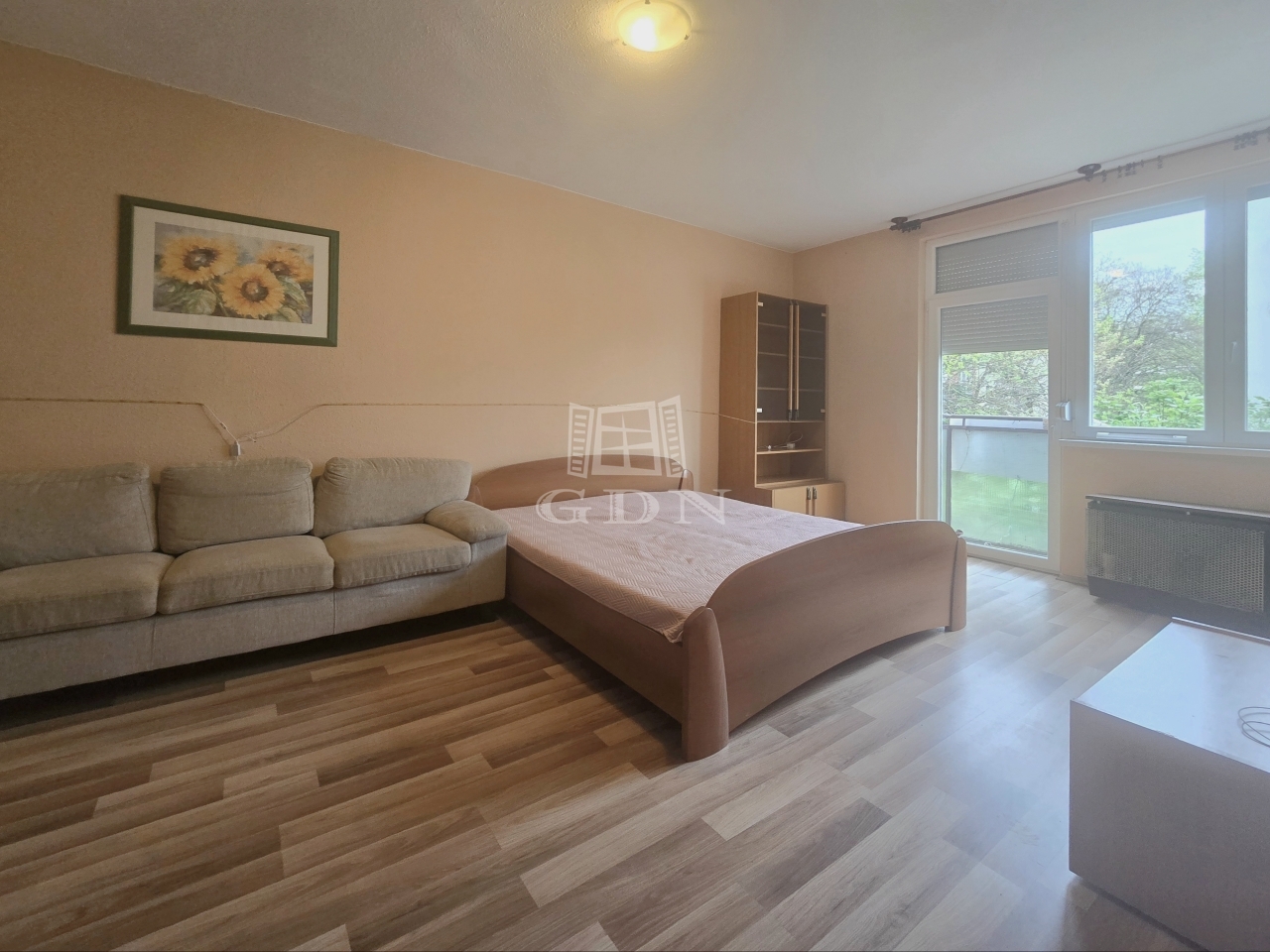Az ingatlan praktikus kialakítású: egy világos, franciaerkélyes nappali, 2 hálószoba, konyha, spejz, valamint egy helyiségben kialakított fürdő és toalett biztosítja a kényelmes mindennapokat.