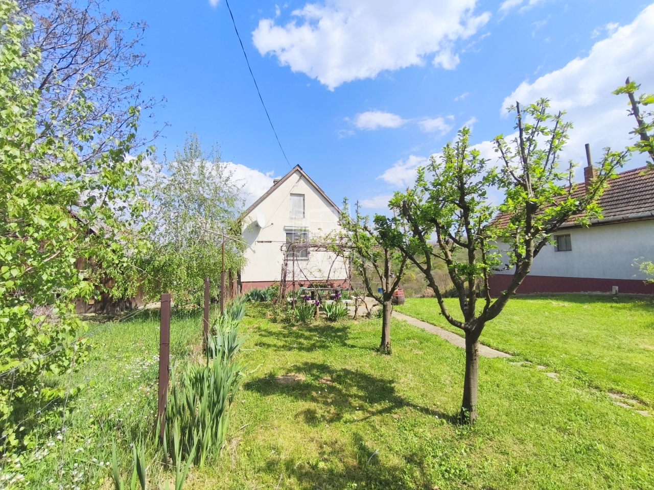 A terület mérete és adottságai igazán különlegessé teszik ezt az ingatlant: a 3453 m²-es területen több termő gyümölcsfa található, a kert rendezett, a természet közelsége pedig minden irányból érezhető.